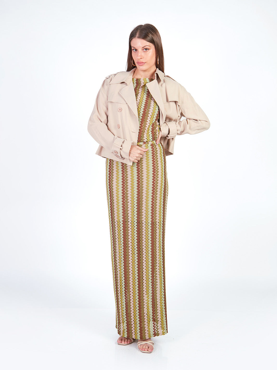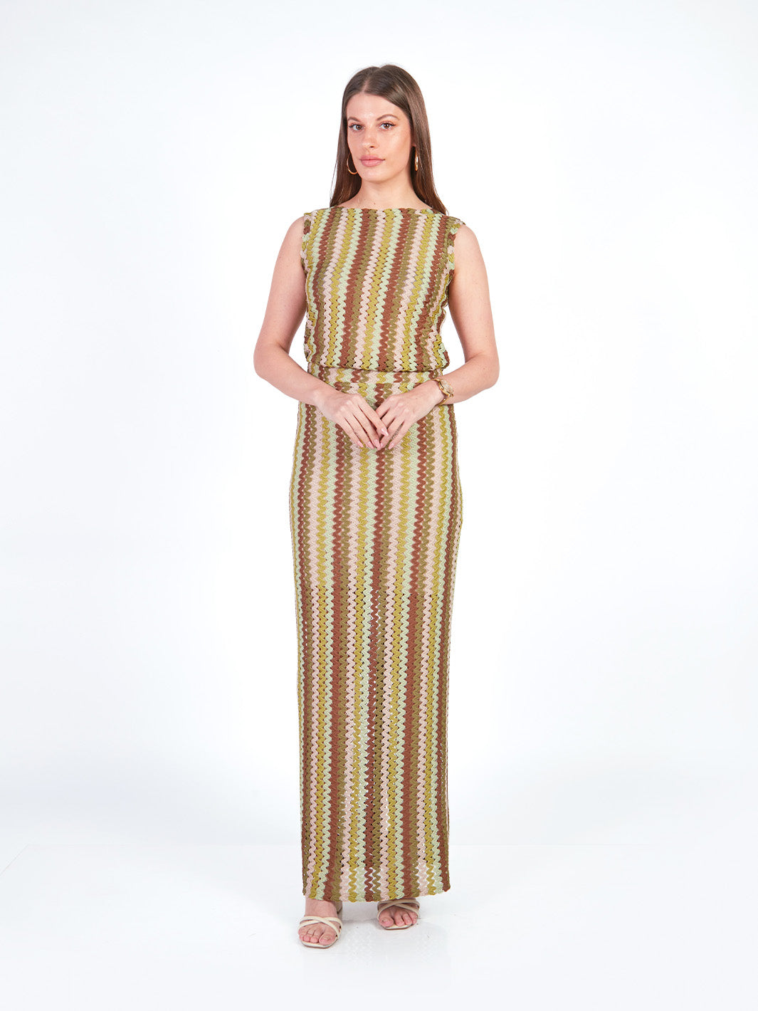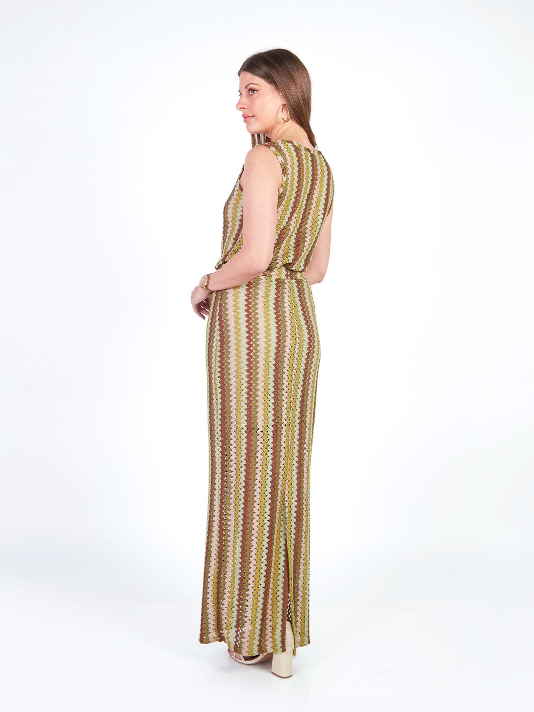Esta falda larga tejida combina comodidad y elegancia en un diseño fluido y moderno. Cuenta con pretina elasticada y falda interna que garantiza mayor confort y movimiento. El detalle a rayas en el tejido aporta un estilo distintivo, ideal para outfits coordinados. Puedes lucirla como conjunto con su polo manga cero y cárdigan manga 3/4 a juego. Disponible en tonos: morado, verde.