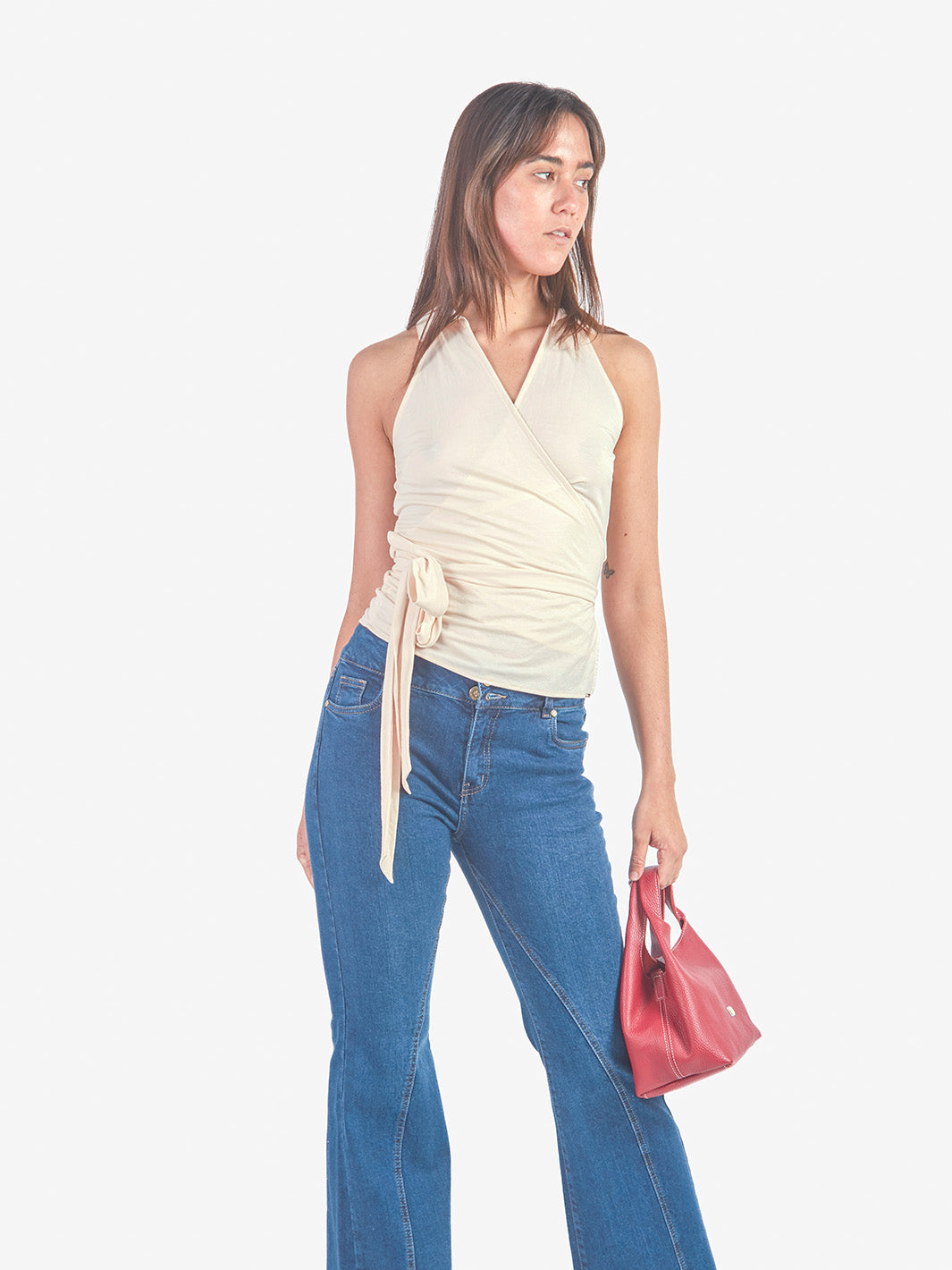 Este polo sin mangas combina elegancia y comodidad con un diseño envolvente que estiliza la silueta. Su escote en V y cuello camisero añaden un aire sofisticado, mientras que el lazo ajustable en la cintura permite definirla con sutileza. Ideal para looks frescos y femeninos. Disponible en tonos hueso, palo rosa y verde.