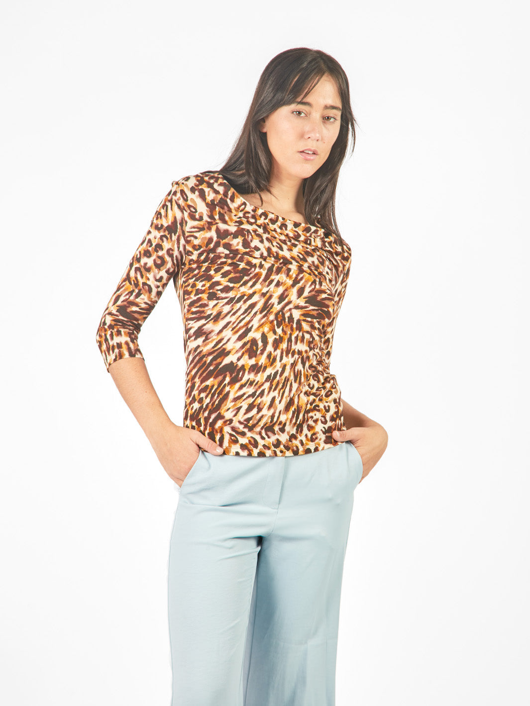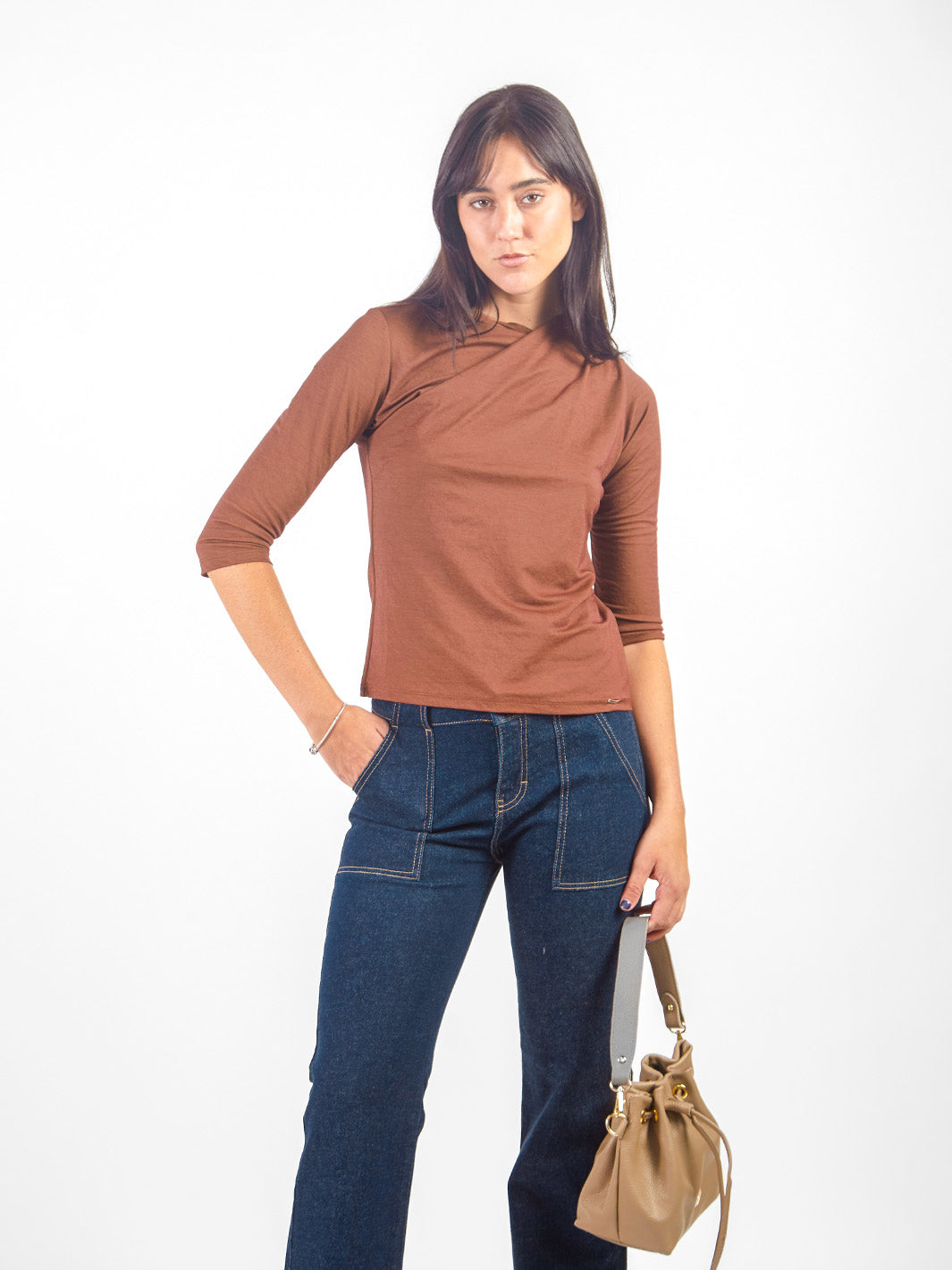 Polo manga 3/4 y escote caída de agua