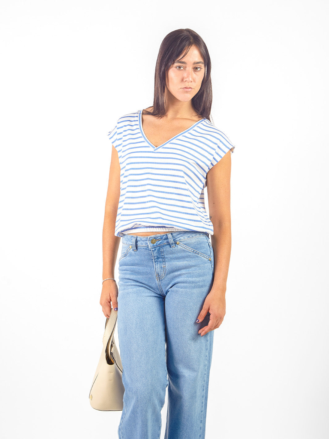 Polo off-shoulder líneas horizontales