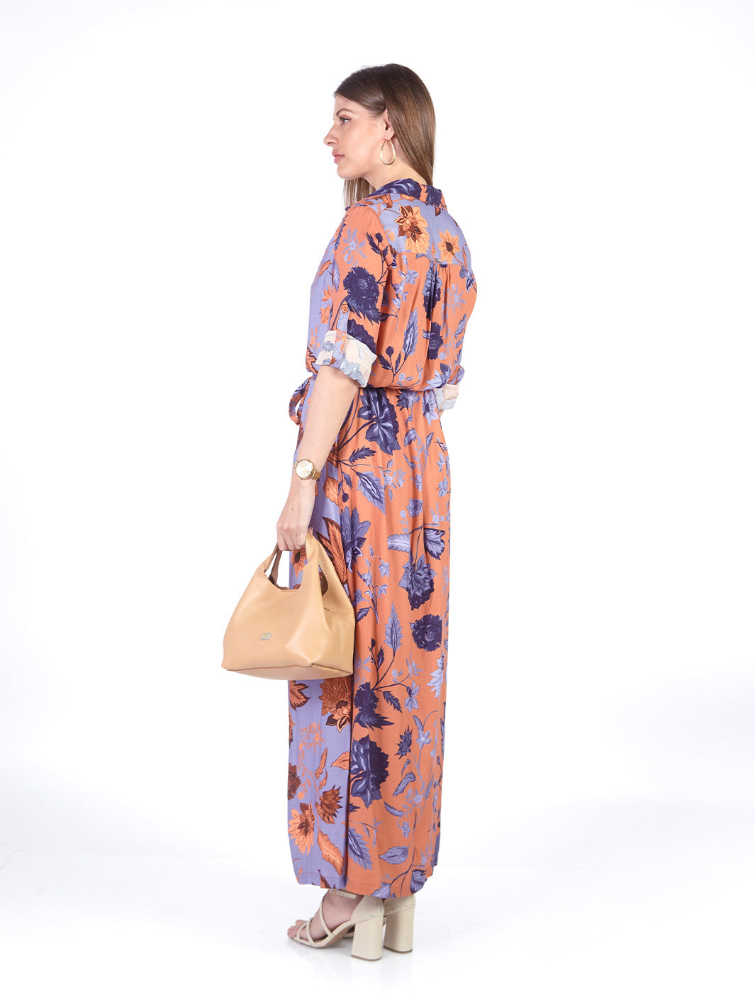 Este vestido camisero de manga larga es una pieza versátil y encantadora que destaca por su delicado estampado en tonos palo rosa con marrones. Con cuello camisero clásico y botones en el delantero, ofrece un estilo refinado y cómodo. El cinturón a tono permite marcar la cintura, mientras que el regulador en las mangas añade practicidad para adaptar el largo según la ocasión. Su confección ligera y fluida lo convierte en una excelente opción para estilizar con facilidad y elegancia. Complementa perfectamente con el pantalón semi palazo a juego para un look armonioso y sofisticado.