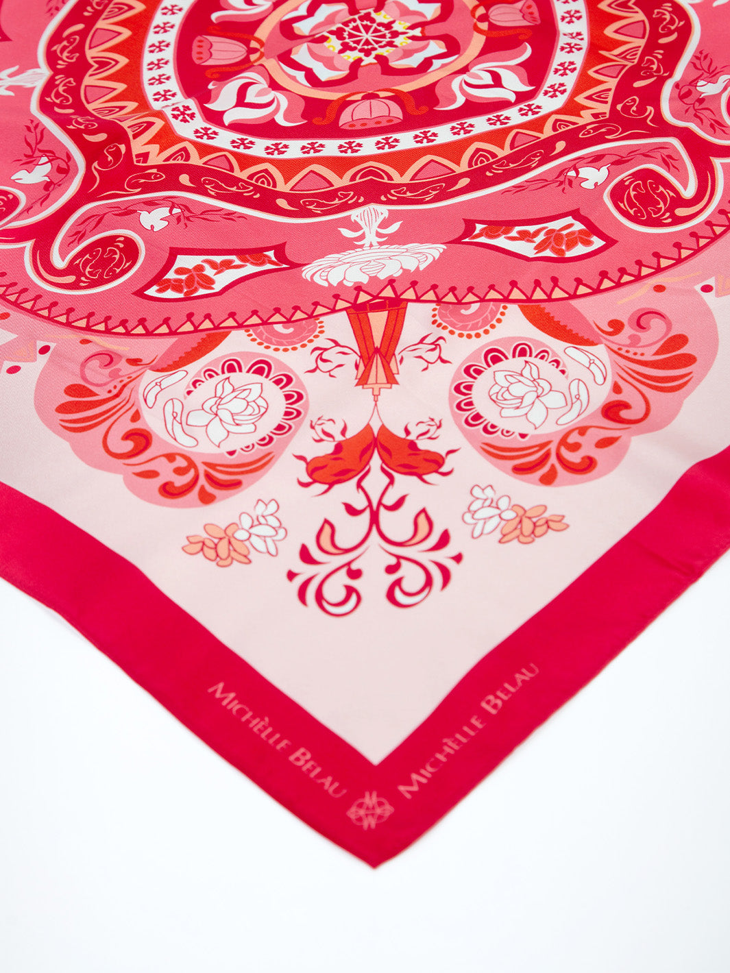 Este elegante pañuelo cuadrado, confeccionado en 100% seda, destaca por su suavidad y caída ligera. Su estampado variado aporta dinamismo visual, perfecto para elevar cualquier look con un toque de sofisticación. La basta a tono realza su acabado refinado. Ideal para lucir al cuello, en el cabello o como detalle en el bolso.