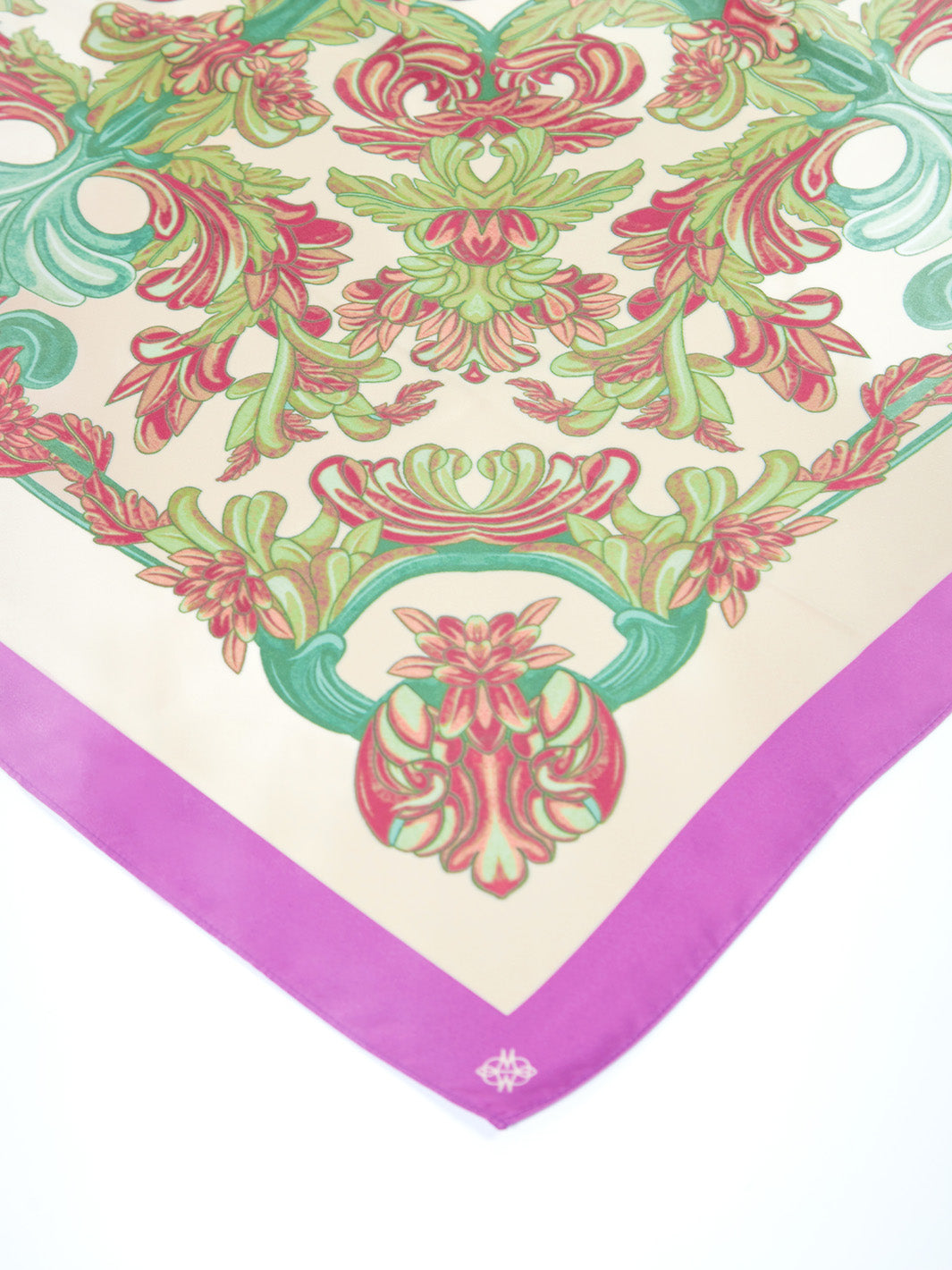 Este elegante pañuelo cuadrado, confeccionado en 100% poliéster, destaca por su delicado estampado floral que añade un aire romántico y femenino a cualquier look. Su textura suave lo convierte en un accesorio cómodo y versátil para usar al cuello, en el cabello o como detalle decorativo en el bolso. La basta a tono asegura un acabado prolijo y armonioso, ideal para complementar atuendos tanto casuales como sofisticados.
