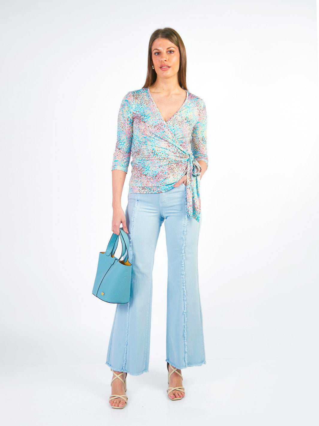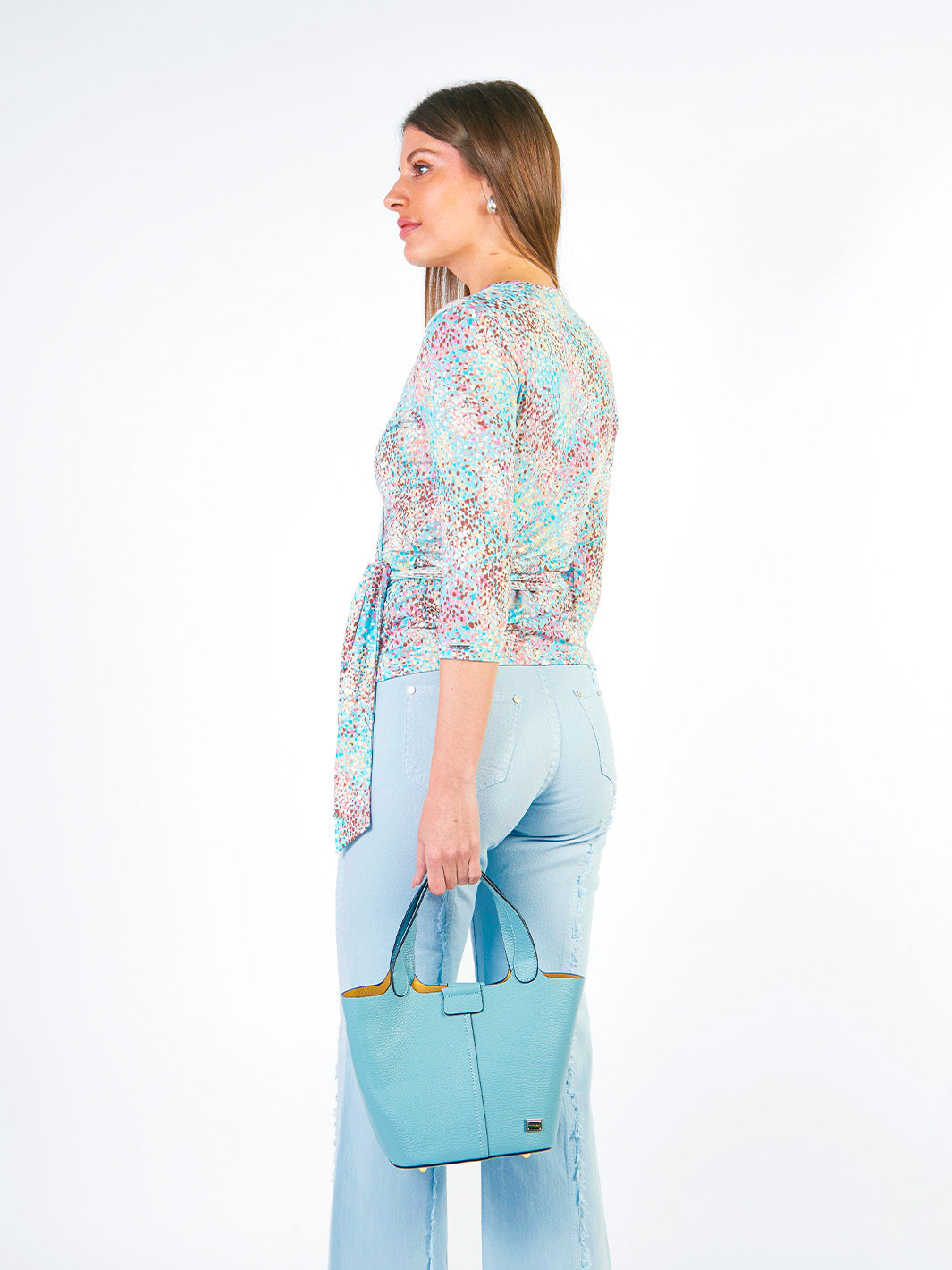 Este polo manga ¾ redefine la comodidad con un enfoque elegante y femenino. Diseñado con un escote en V envolvente que estiliza el torso y realza el cuello, incorpora un cinturón a tono que se ajusta delicadamente a la cintura, marcando la silueta con sutileza. Está disponible en dos estampados cautivadores: uno inspirado en la naturaleza, con plantas en tonos palo rosa y azul que aportan frescura y armonía; y otro de animal print en tonos verde agua y verde militar, ideal para un estilo audaz y sofisticado. Su versatilidad lo convierte en una prenda perfecta tanto para ocasiones casuales como para elevar tus looks del día a día con un toque refinado.